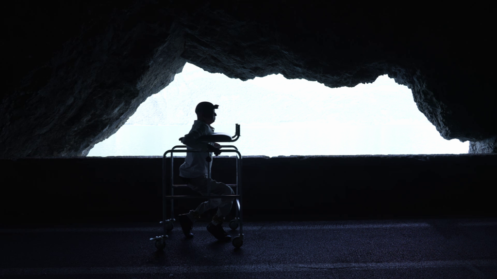 The story develops through symbols concerning identity, presence, existence and condition. Documentary scenes alternate with anatomical frames. Keeping direction straight on, the protagonist discovers new territories—nowhere is everywhere.